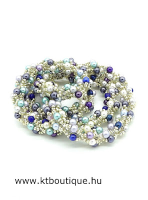 Az előző bejegyzésben mutatott ékszer ellenpontja: pasztell, visszafogott színekben készült elegáns nyakék-karkötő szett.